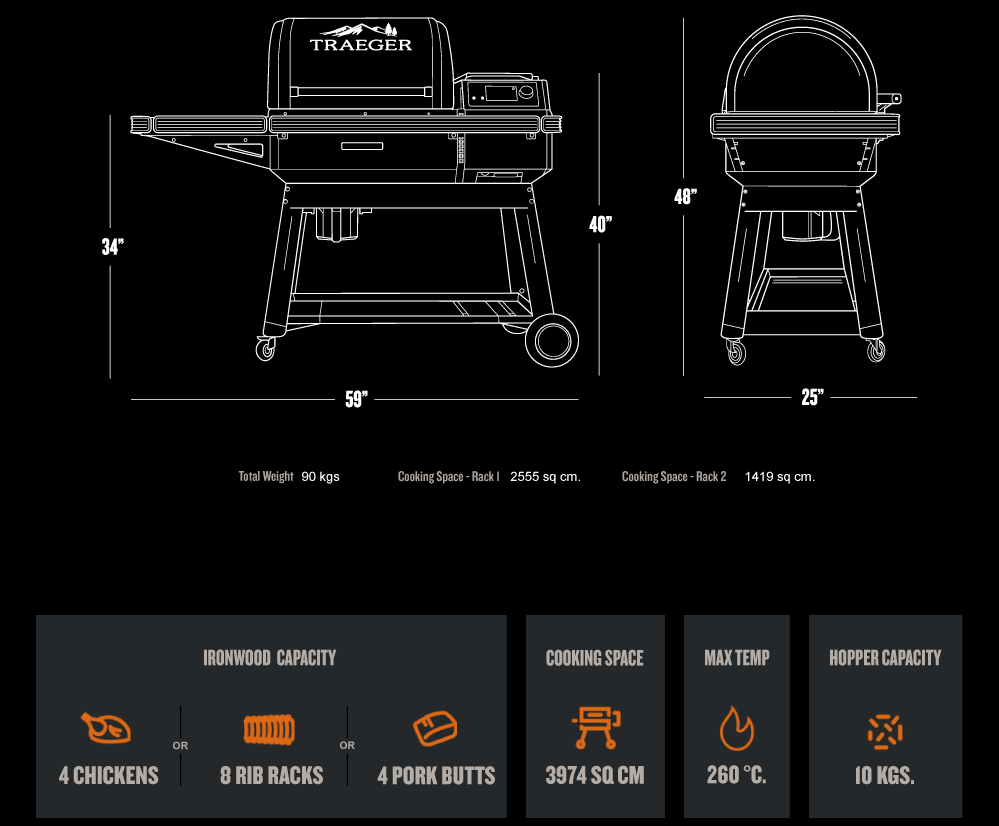 Everything tastes better cooked over wood and the Ironwood let’s you have complete control over smoke. Not all temperatures are equal. The higher the temps, the less smoke will be produced. Food cooked between 165° - 225° will produce more smokin’ flavour to fit your tastebuds than those cooked at higher temps.
