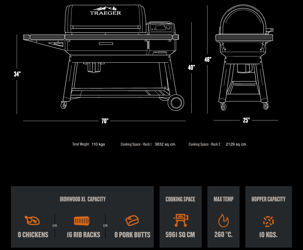 We’ll break it down for you. The Ironwood features 616 square inches of total cooking capacity and theIronwood XL features 924 square inches. Other than cooking capacity, the features are the same.